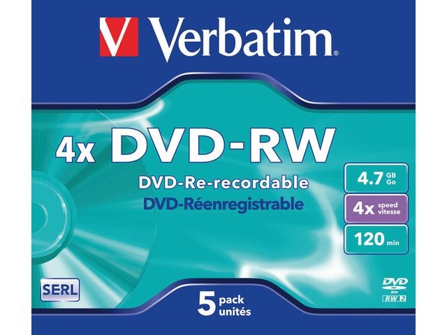 Kenmerken DVD-RW VERBATIM 4.7GB 4X 5PK JC