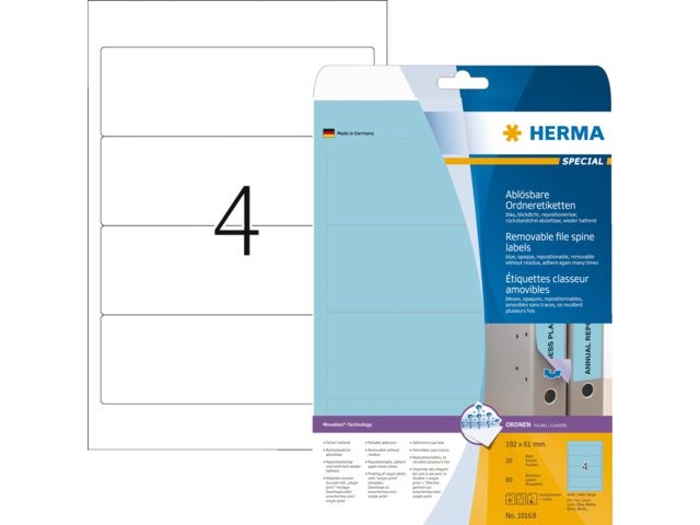 Kenmerken RUGETIKET HERMA MOVABLE 10168 192X61MM 80ST BLAUW