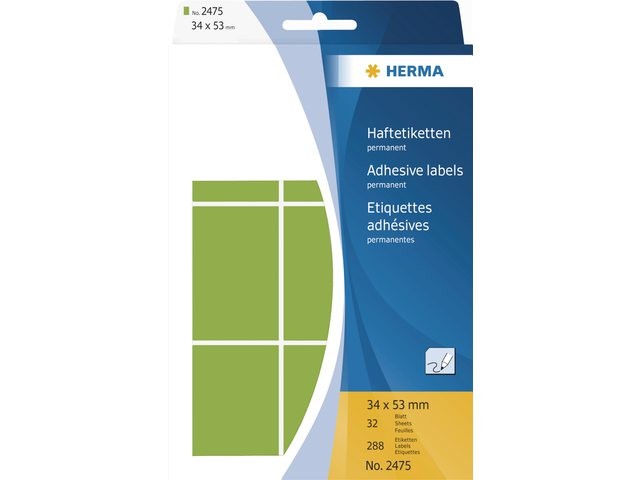 Kenmerken ETIKET HERMA 2475 34X53MM 288ST GROEN