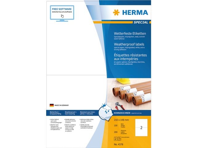 Kenmerken ETIKET HERMA 4378 210X148MM 200ST