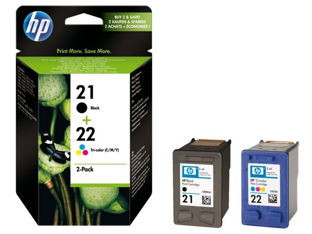 | Extra Information | De set bevat:<R><R>1x HP 21 standaard cartridge zwart, inhoud 5ml.190 afdrukken<R>1x HP 22 standaard cartridge kleur, inhoud 5ml.165 afdrukken |